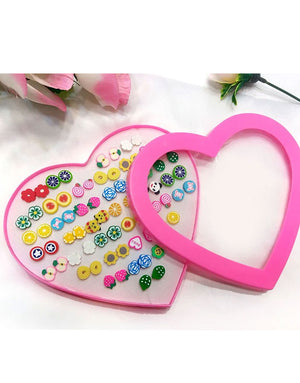 36 Pairs Mixed Color Cute Animal & Fruit Love Heart Stud Earrings Set for Girls