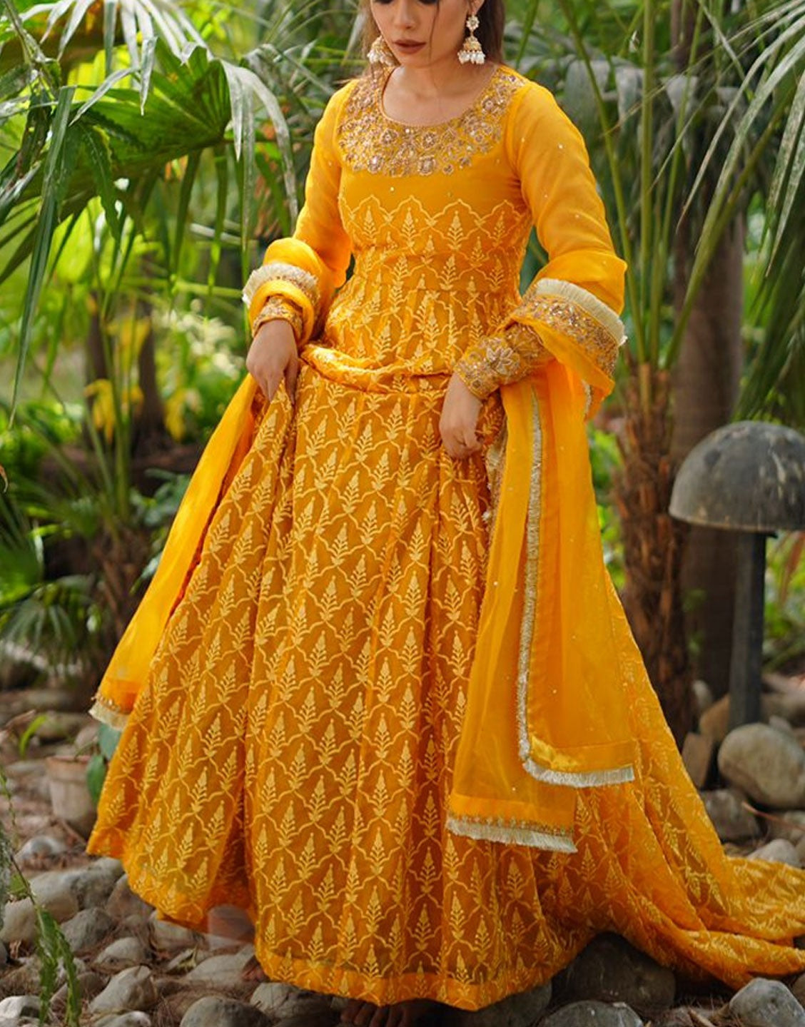 Amna Ismail Organza Maxi Dress for Mehndi Function | Roshan AI46121