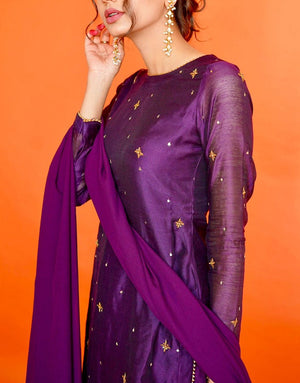 Amna Ismail Cotton Net Purple Shalwar Kameez Suit | AI47928