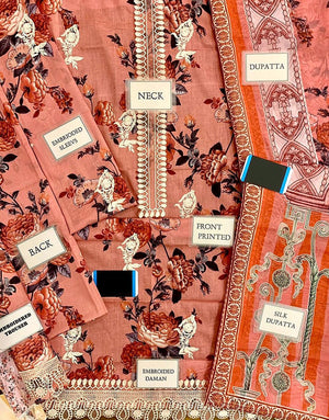 Digital All-Over Print Embroidered Lawn Dress with Silk Dupatta