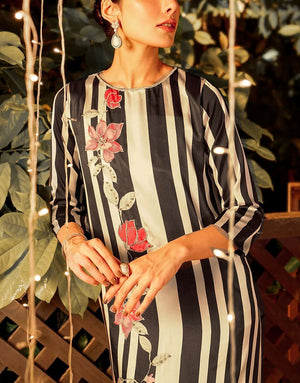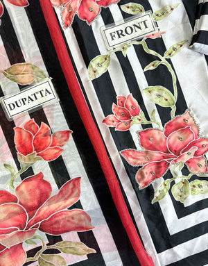 Digital Print Embroidered Silk Dress with Silk Dupatta