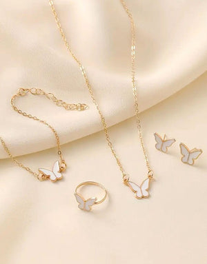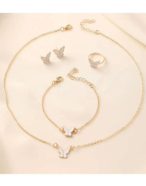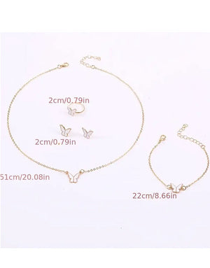 4-Piece Trendy Butterfly Shape Jewelry Set with Bracelet, Earring, Necklace and Ring