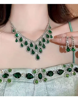 Looking to buy Elegant Green Rhinestone Teardrop Silver Necklace & Earrings Set online in Pakistan? Discover modern designs, reliable quality, and the best price available. Shop now and enjoy fast delivery and secure checkout.