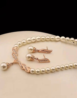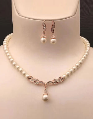 High Quality Rose Gold Pearl Necklace Set with Earrings