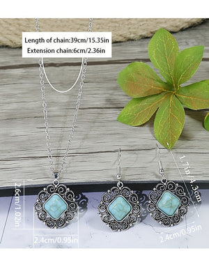 Looking to buy Vintage Silvery Rectangular Turquoise Necklace with Earrings Set online in Pakistan? Discover modern designs, reliable quality, and the best price available. Shop now and enjoy fast delivery and secure checkout.