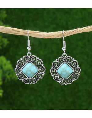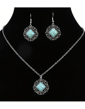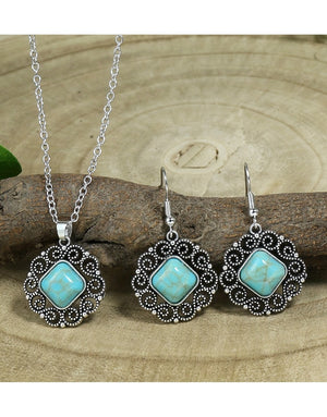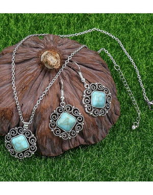 Vintage Silvery Rectangular Turquoise Necklace with Earrings Set