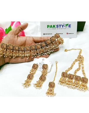 Looking to buy Bridal Champagne Stones Necklace Set with Earrings, Jhumar and Maang Teeka online in Pakistan? Discover modern designs, reliable quality, and the best price available. Shop now and enjoy fast delivery and secure checkout.