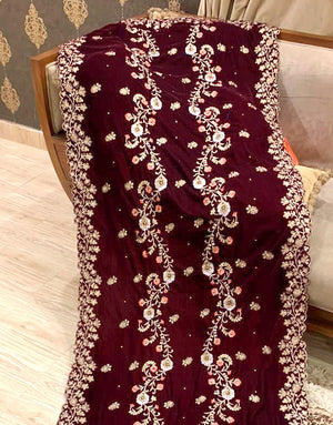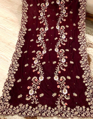 Premium Quality Heavy Embroidered Bridal Velvet Shawl - Maroon