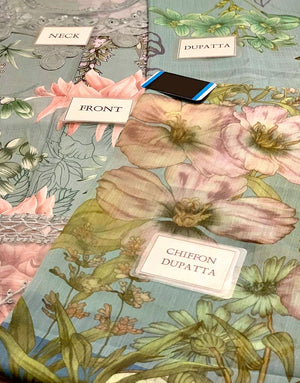 All-Over Print Embroidered Cambric Cotton Dress with Chiffon Dupatta