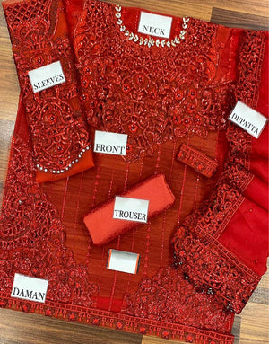 Looking to buy Heavy Embroidered with Cutwork Red Chiffon Wedding Dress online in Pakistan? Discover modern designs, reliable quality, and the best price available. Shop now and enjoy fast delivery and secure checkout.