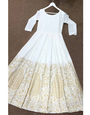 Readymade Embroidered White Chiffon Maxi with Inner