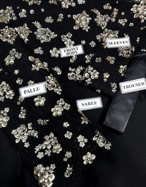Luxury Heavy Embroidered Black Chiffon Wedding Saree