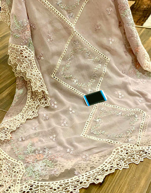 - 4 Side Border Cutwork Embroidered Chiffon Dupatta