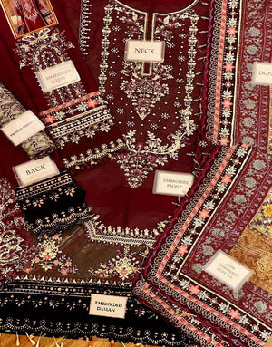 - Heavy Embroidered Chiffon Sleeves with Embroidered Border