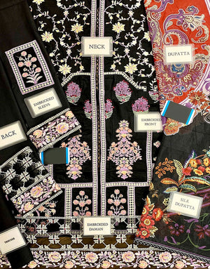 Luxury Embroidered EID Lawn Dress with Digital Print Silk Dupatta