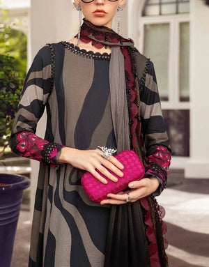 Digital Print Embroidered Swiss Lawn Dress with Silk Dupatta