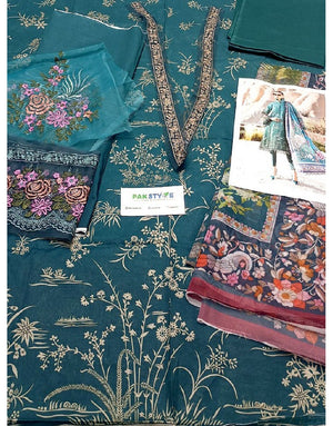 Elegant Embroidered Lawn Dress with Digital Print Silk Dupatta
