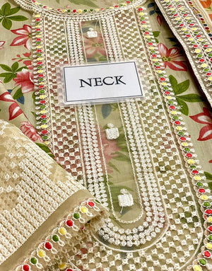 All-Over Print Embroidered Lawn Suit with Chiffon Dupatta