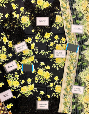 All-Over Print Embroidered Lawn Suit with Chiffon Dupatta