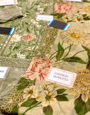 All-Over Print Schiffli Embroidered Lawn Dress with Chiffon Dupatta