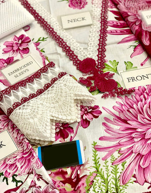 All-Over Print Embroidered EID Lawn Suit with Chiffon Dupatta