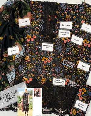 All-Over Print Embroidered Black Lawn Suit with Chiffon Dupatta
