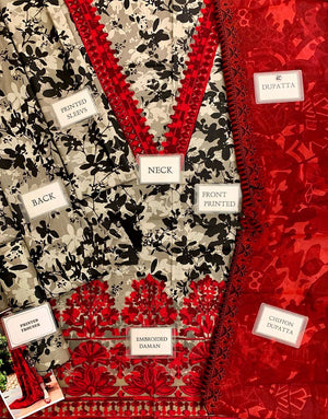 All-Over Print Embroidered Lawn Dress with Chiffon Dupatta