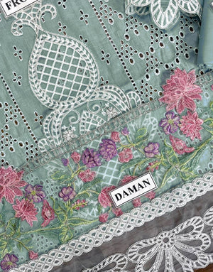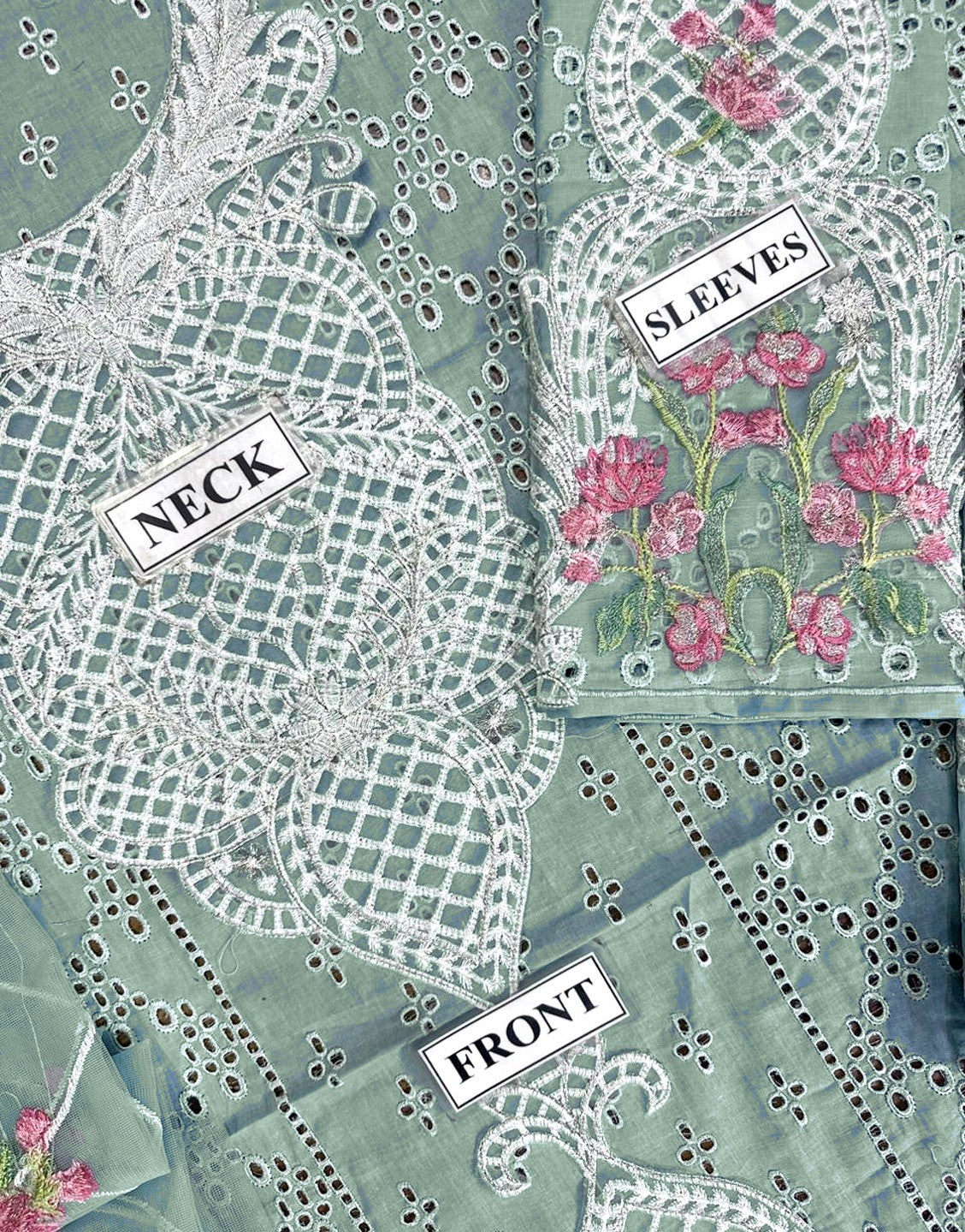 Luxury Heavy Schiffli Embroidered Cotton Lawn Dress with Emb. NET Dupatta
