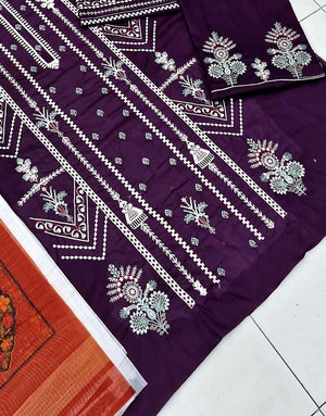 Elegant Embroidered Lawn Suit with Digital Print Diamond Dupatta