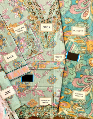All-Over Digital Print Embroidered Lawn Suit with Chiffon Dupatta