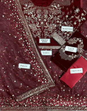 Luxury Heavy Embroidered Velvet + NET Bridal Saree