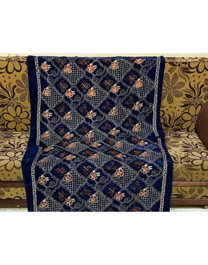 Heavy Embroidered Navy Blue Bridal Velvet Shawl