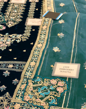 Heavy Embroidered Velvet Dress with Embroidered Organza Dupatta