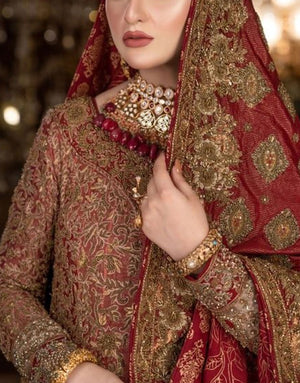 HSY Traditional Embroidered Bridal Dress with a Handcrafted Shawl