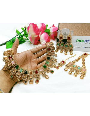 Looking to buy Multicolor Stones & Zircon Studded Bridal Jewellery Set with Earrings, Jhumar & Teeka online in Pakistan? Discover modern designs, reliable quality, and the best price available. Shop now and enjoy fast delivery and secure checkout.