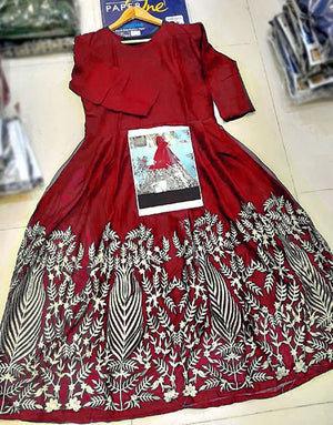 Readymade Embroidered Red Chiffon Maxi with Inner