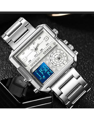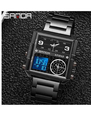 Original Sanda WR3BAR Men's Triple Time Stainless Steel Watch 6023