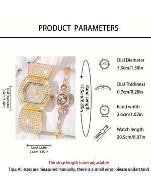 2-Pcs Elegant Ladies Golden Bracelet Watch and Sparkling Bracelet Set