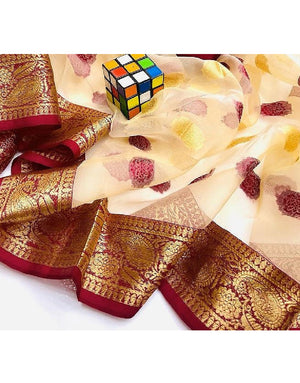 Banarsi Style Raw Silk Dress with Organza Jacquard Dupatta