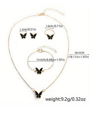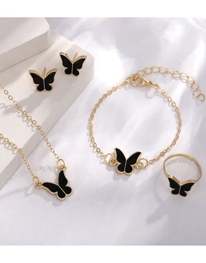 4-Piece Trendy Butterfly Shape Jewelry Set with Bracelet, Earring, Necklace and Ring