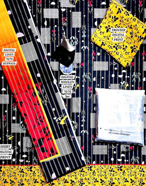 All-Over Digital Print Woolen Linen Suit with Linen Dupatta