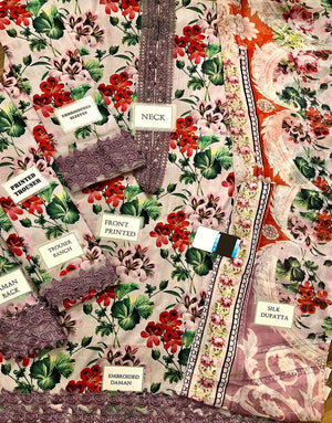 Digital All-Over Print Embroidered Lawn Suit with Silk Dupatta