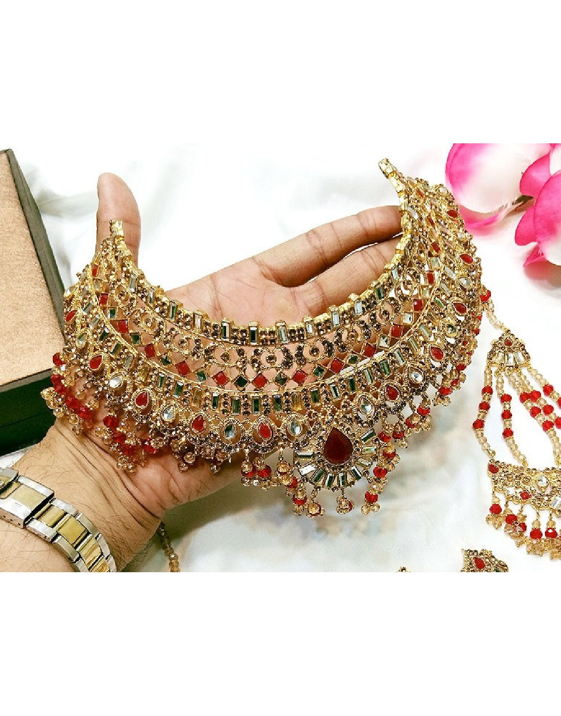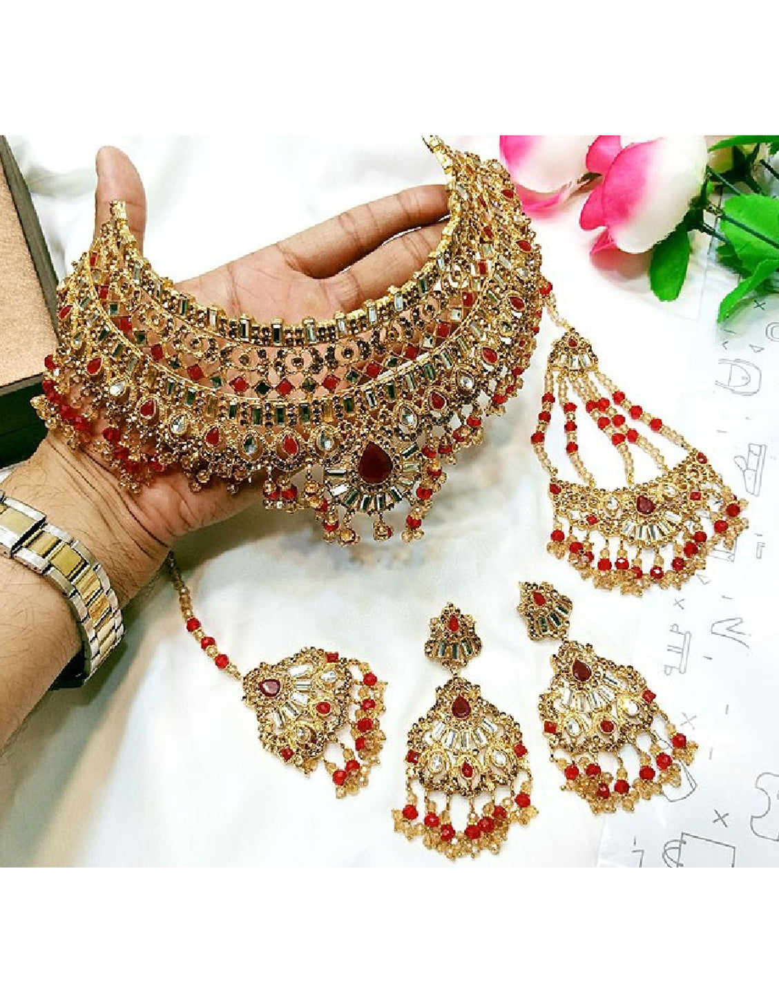 Looking to buy Bridal Collar Choker Necklace Set with Earrings, Jhumar and Maang Teeka online in Pakistan? Discover modern designs, reliable quality, and the best price available. Shop now and enjoy fast delivery and secure checkout.
