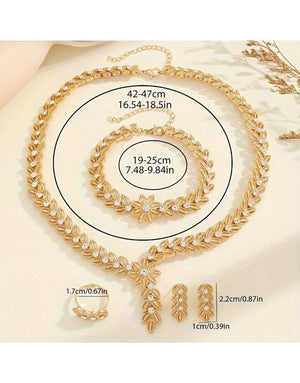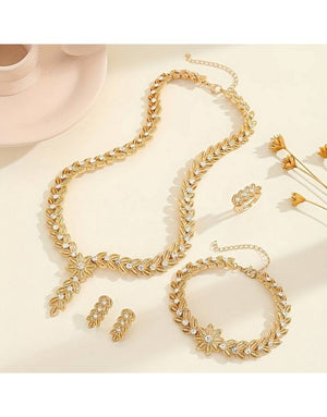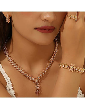 4-Piece Elegant Party Wear Necklace Set with Adjustable Ring, Bracelet & Earrings