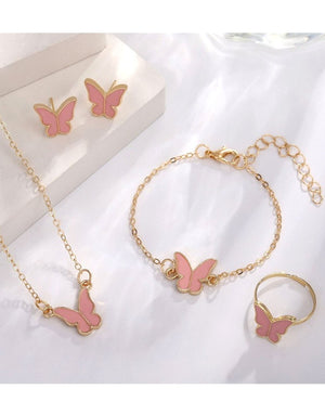 4-Piece Trendy Butterfly Shape Jewelry Set with Bracelet, Earring, Necklace and Ring