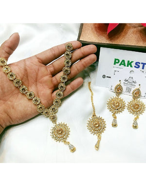 Looking to buy Elegant Champagne Stone Jewelry Set with Earrings & Tikka online in Pakistan? Discover modern designs, reliable quality, and the best price available. Shop now and enjoy fast delivery and secure checkout.