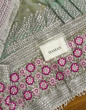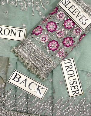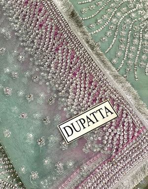 Fancy Heavy Embroidered Chiffon Maxi Dress with Emb. NET Dupatta