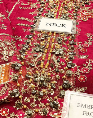 Looking to buy Luxury Embroidered Fluorescent Magenta Chiffon Wedding Dress with Heavily Embellished Neckline online in Pakistan? Discover modern designs, reliable quality, and the best price available. Shop now and enjoy fast delivery and secure checkout.