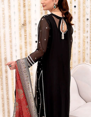 Formal Embroidered Black Chiffon Wedding Dress with Silk Dupatta