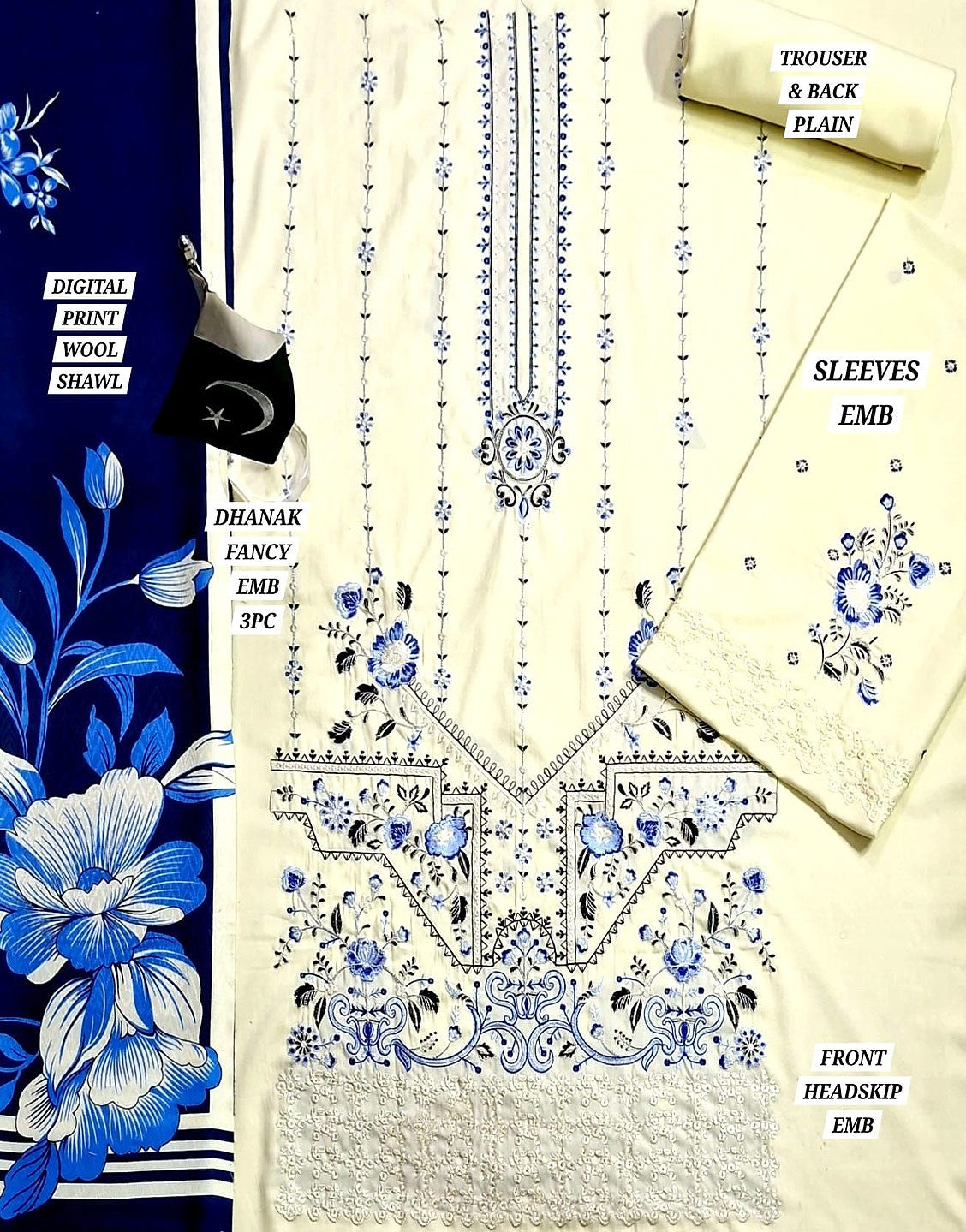 - Product: 3 Pieces Embroidered Dhanak Suit